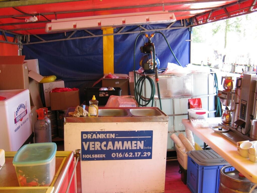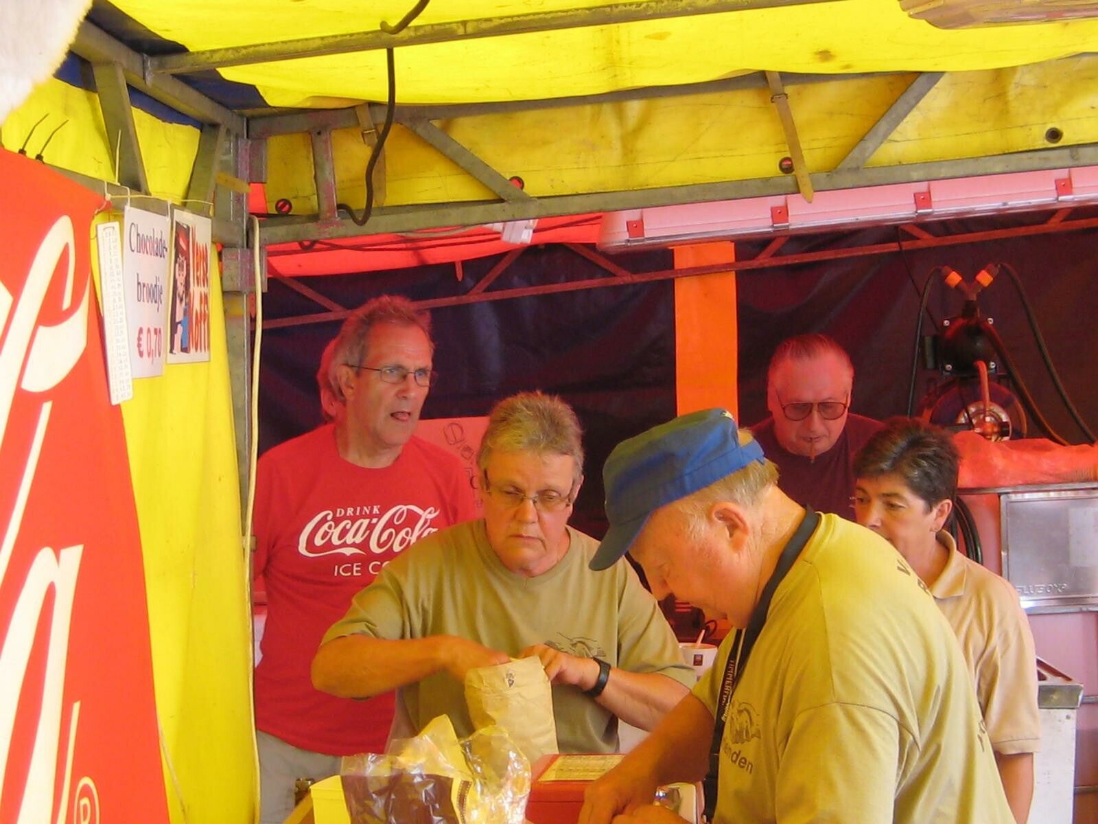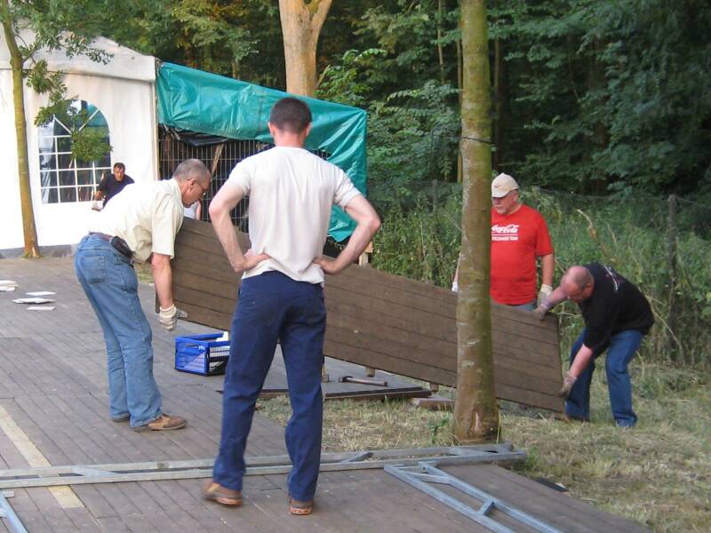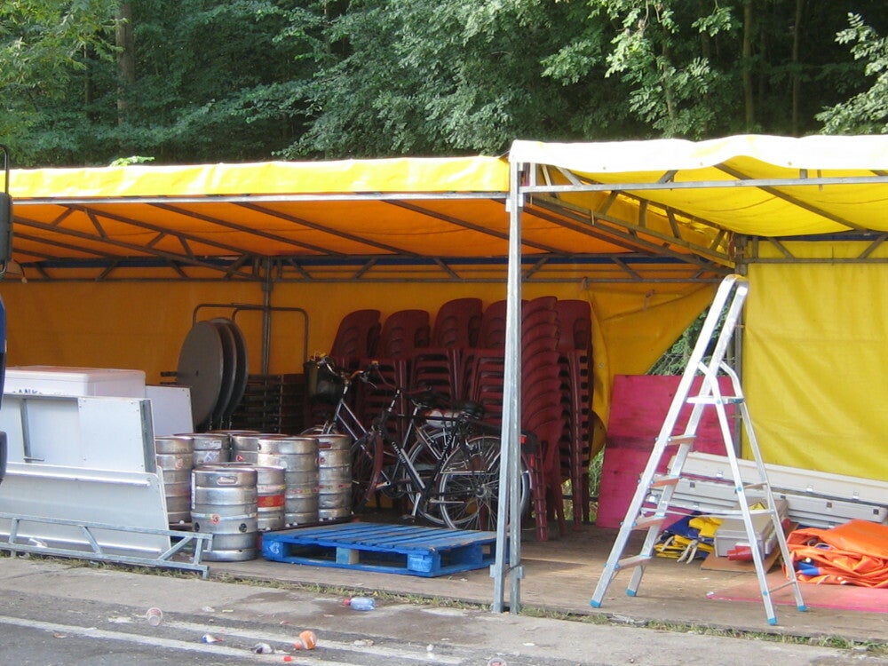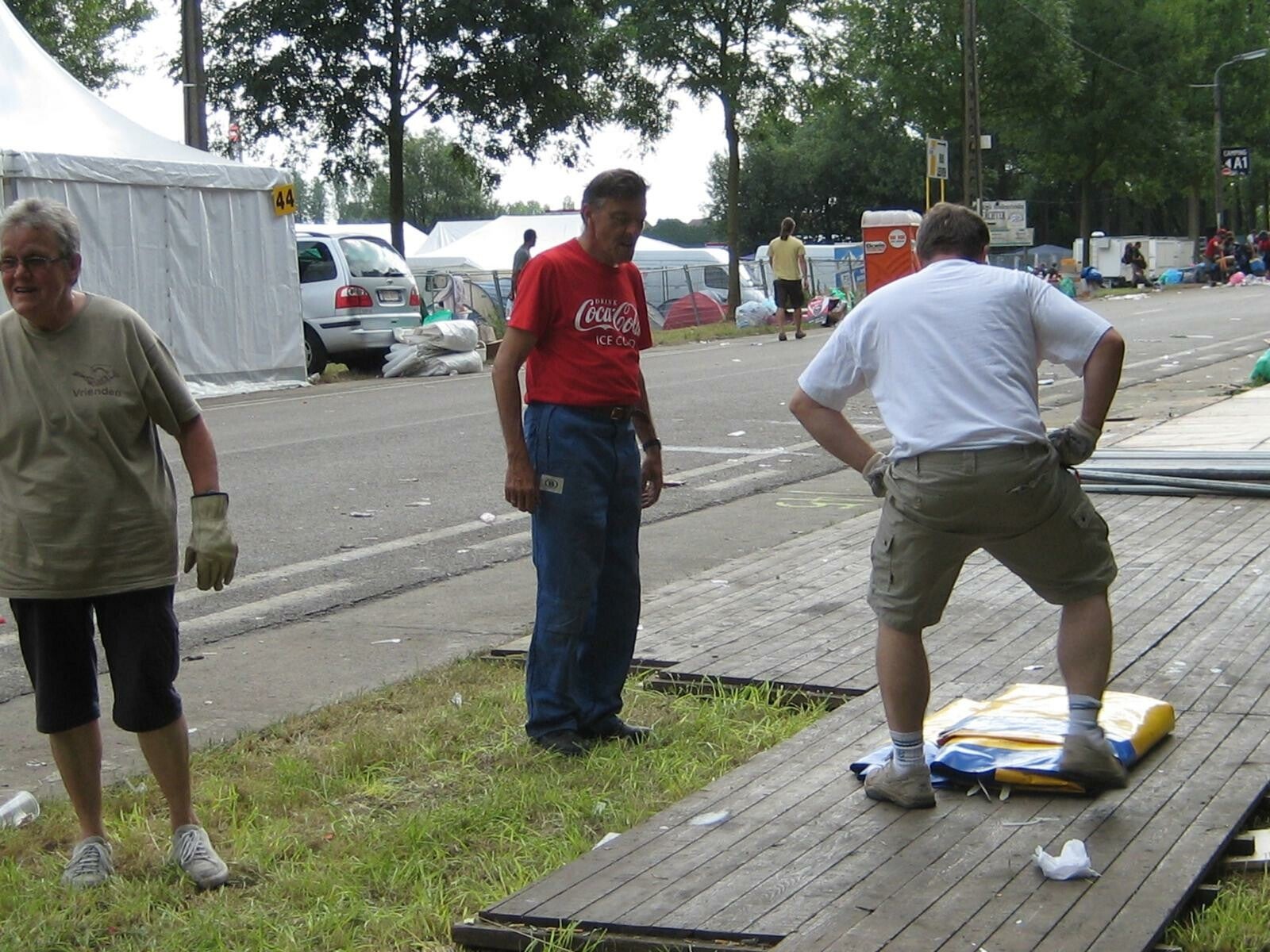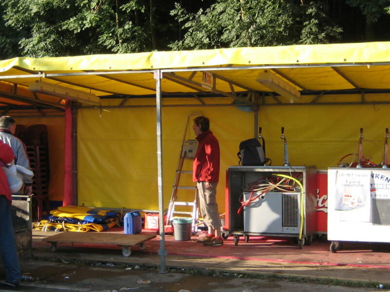 Van half juni zijn we al bezig met de voorbereidingen : materiaal reinigen en monteren. Op 30 juni mogen we de tent opbouwen. Op 1 juli richten we ze in. Maar we mogen nog niet openen : dus zorgen we voor een nachtwacht.
