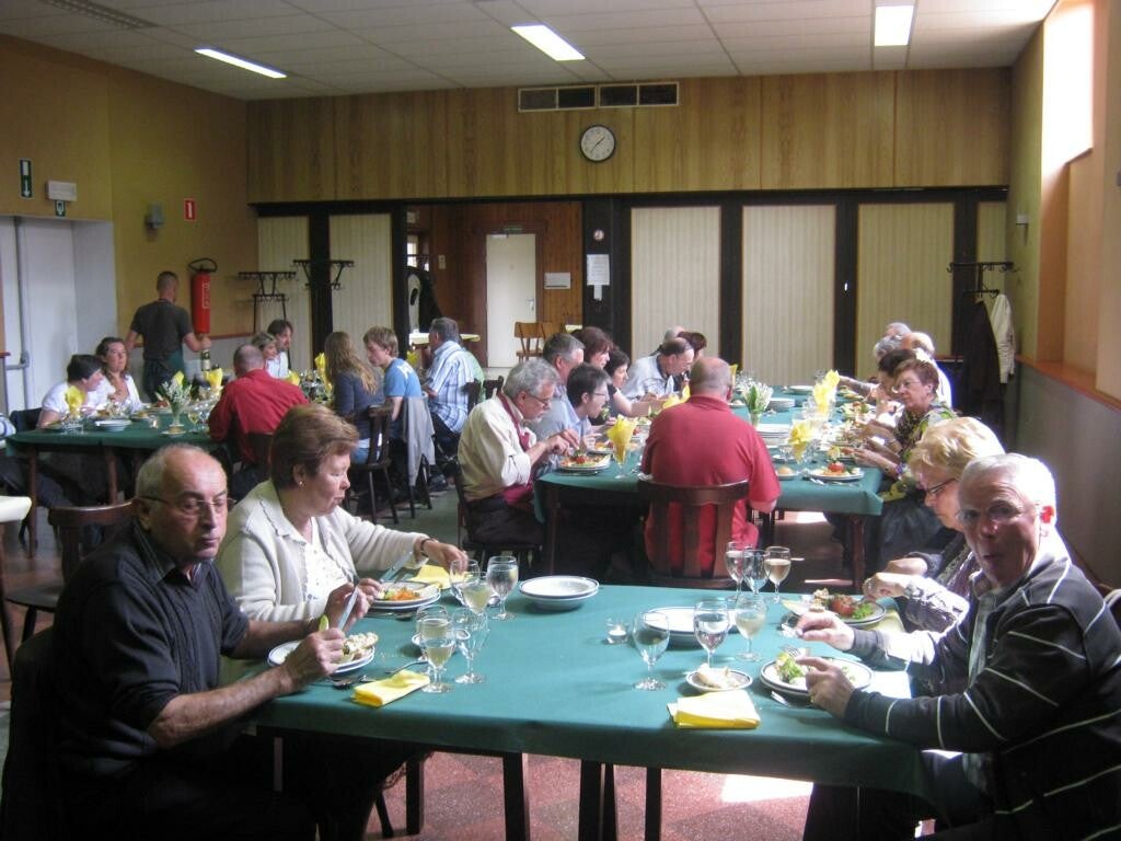 Op het menu : CHAMPIGNONROOMSOEP - TOMAAT OPGEVULD MET GRIJZE GARNALEN - VARKENSHAASJE IN KRUIDENSAUS MET FIJNE GROENTEN EN KROKETTEN - OPGEVULDE ANNANAS MET ROOMIJS - KOFFIE