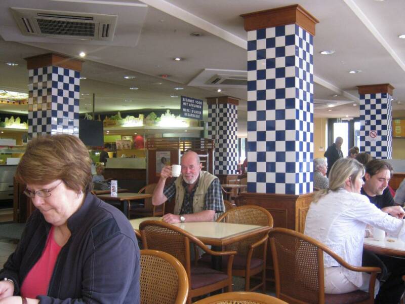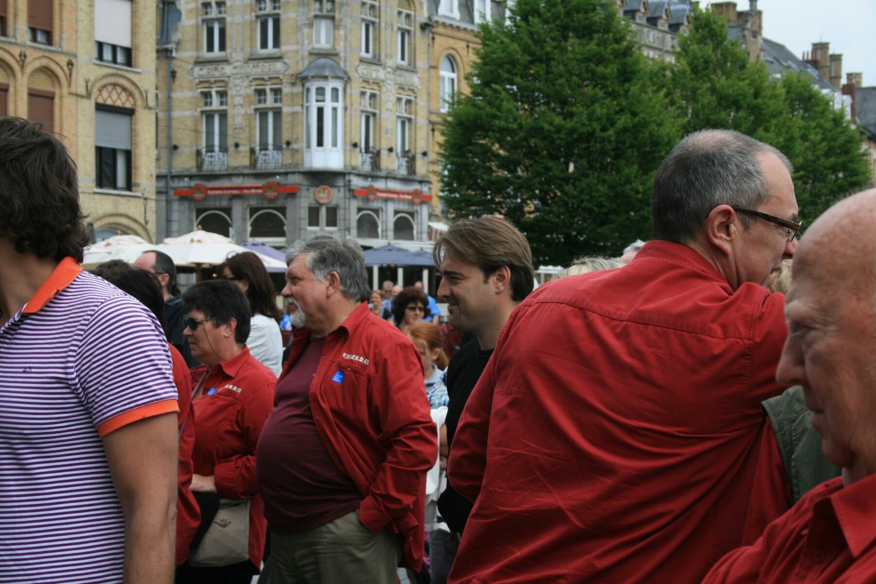 We rijden door naar Ieper, middagmaal in het Novotel in het centrum. We komen langs de Menenpoort, over het marktplein (waar toevallig ook een markt bezig was), aan op onze afspraak.