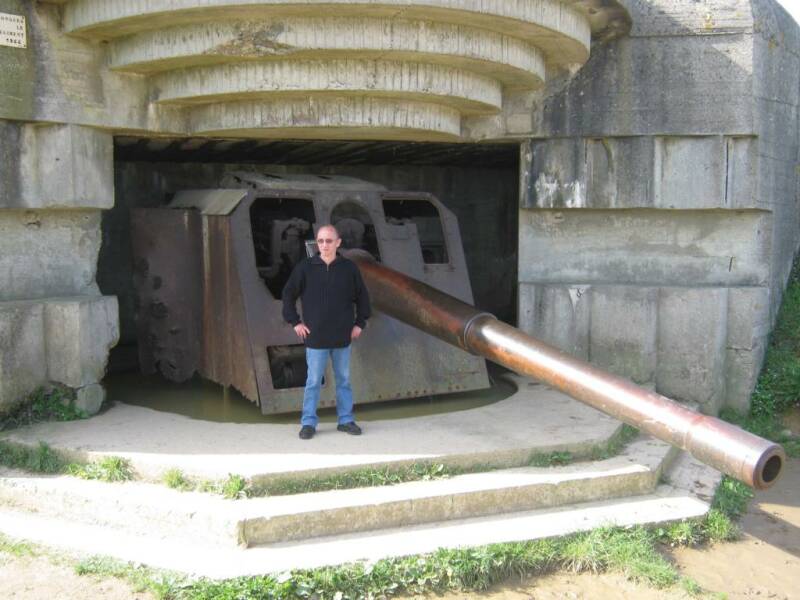 Het middagmaal is vrij, in Port en Bessin. Maar onderweg stoppen we even aan de Batteries de Longues.