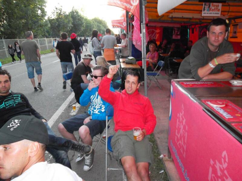 We zijn al snel klaar met de opbouw, het is stilaan een routine geworden. En de festivalgangers zijn ook snel daar. Dus zien we de volgende dagen de gebruikelijke taferelen : vroege vogels, rare vogels, nachtraven, hier en daar een nuchtere jongeling, maar soms ook stiepelzatte kwieten, en bij het ochtendgloren, sukkelaars, die nog altijd hun tent niet gevonden hebben...