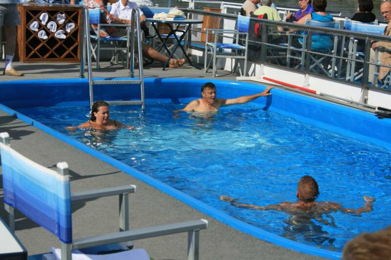 Het is onze laatste avond aan boord : dus Captains Dinner ! Het personeel is opnieuw 'deftig' aangekleed !! En ook wij zijn in 'uniform' !!!