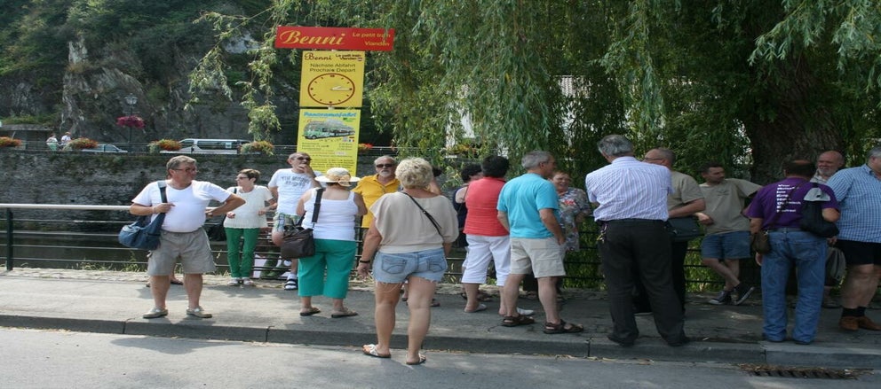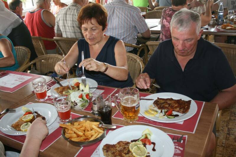 We eten in Café du Pont. Omdat we 's avonds nog een feestmaal hebben in het hotel, hebben we een 'schnitselke' besteld. Maar dat hadden ze blijkbaar niet goed verstaan. Of het zijn daar ZEER grote eters?