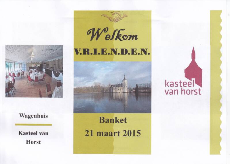 21 maart : ons jaarlijks banket, ditmaal in het Wagenhuis, bij het Kasteel van Horst.