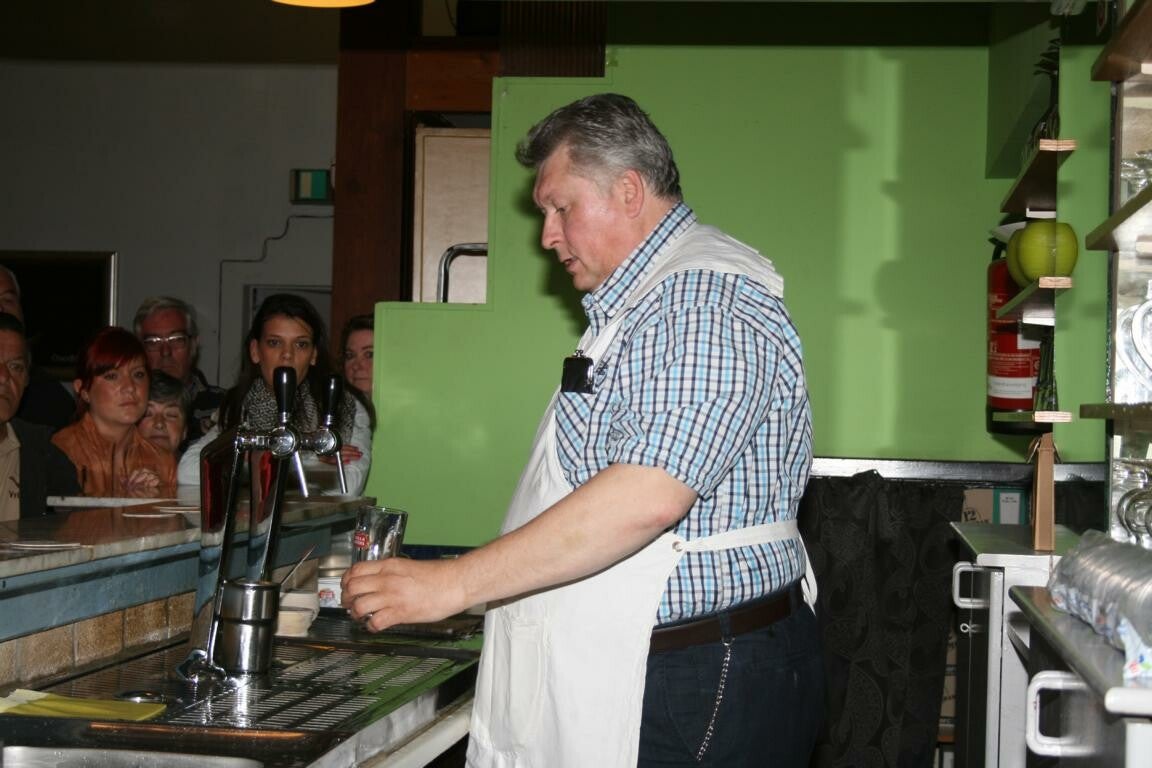 20 mei : we geven onze tapcursus in het zaaltje van 't Kaffeeke, aan het Rond Punt
