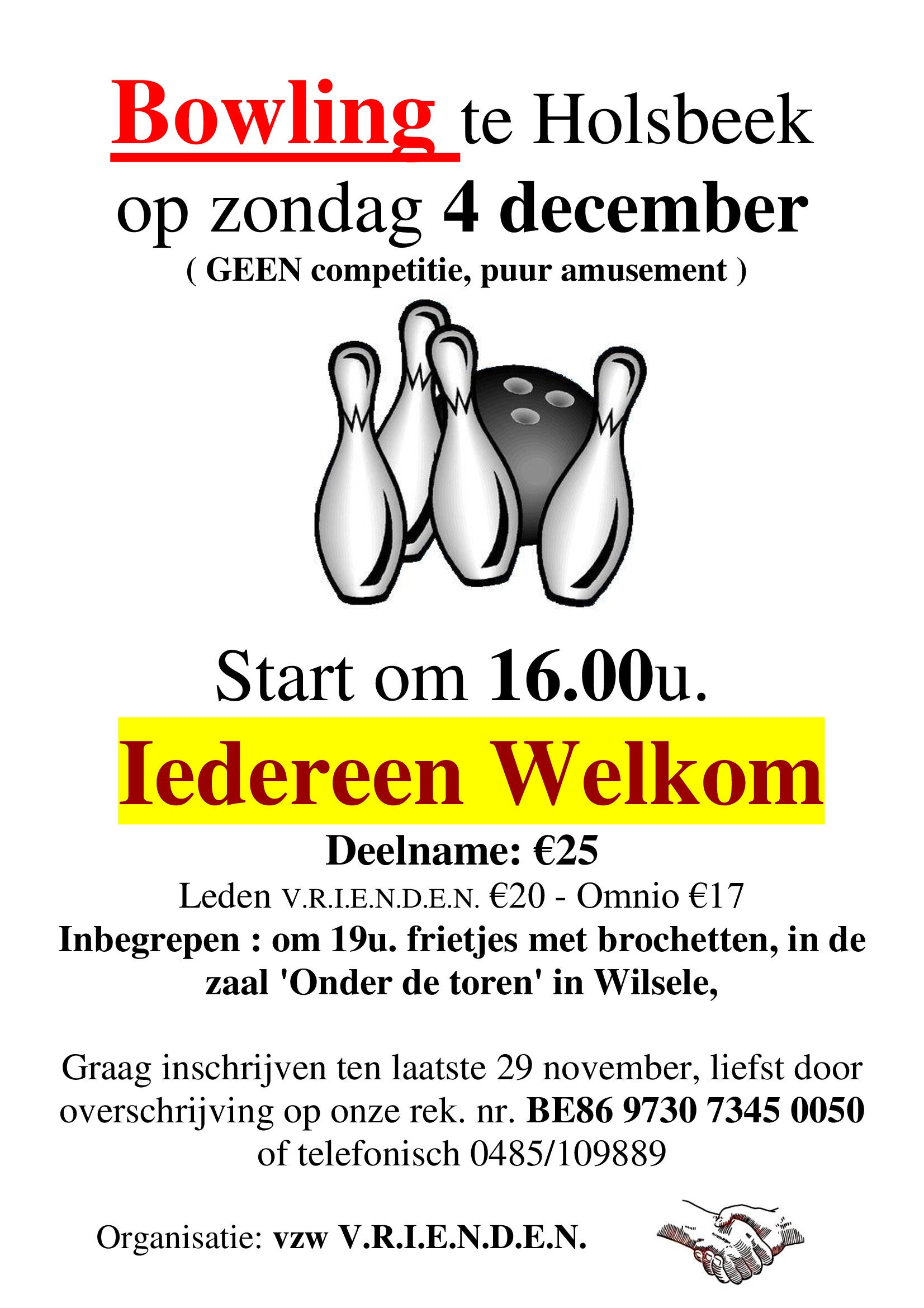 4 december : we gaan Bowlen in de A2, daarna eten bij Seppe, Onder de Toren