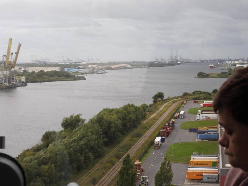 Sven, onze chauffeur, moet zijn rustpauzes respecteren : na 45 minuten trekken we verder, richting Normandië. Even genieten van het uitzicht als we over de Pont de Normandie rijden.