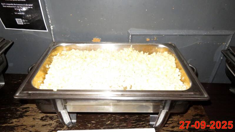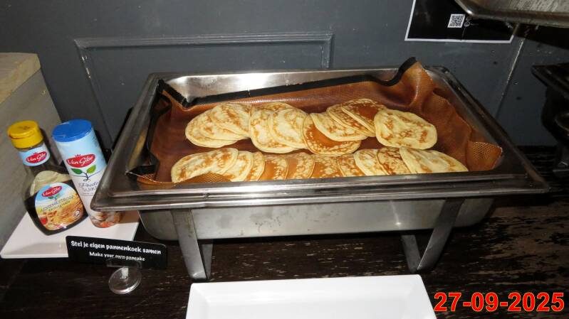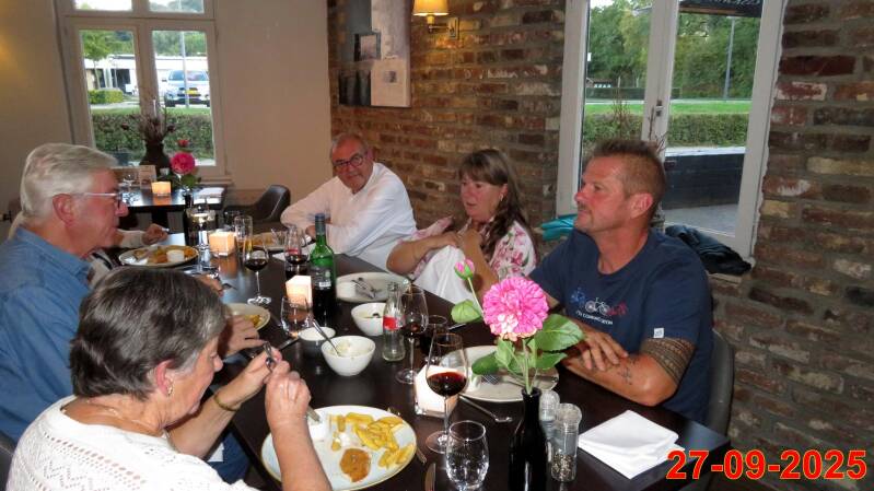 Laatste avondmaal in het hotel : pomodorisoep, schnitzel met friet en champignon- of peperroomsaus, en een dessertje.