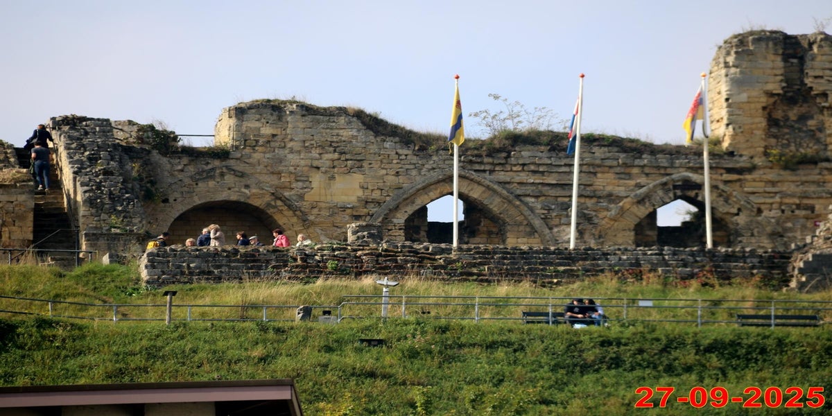 Terug naar beneden, want we gaan een soepje en een lichte maaltijd krijgen in de cafetaria bij de kasteelruïne